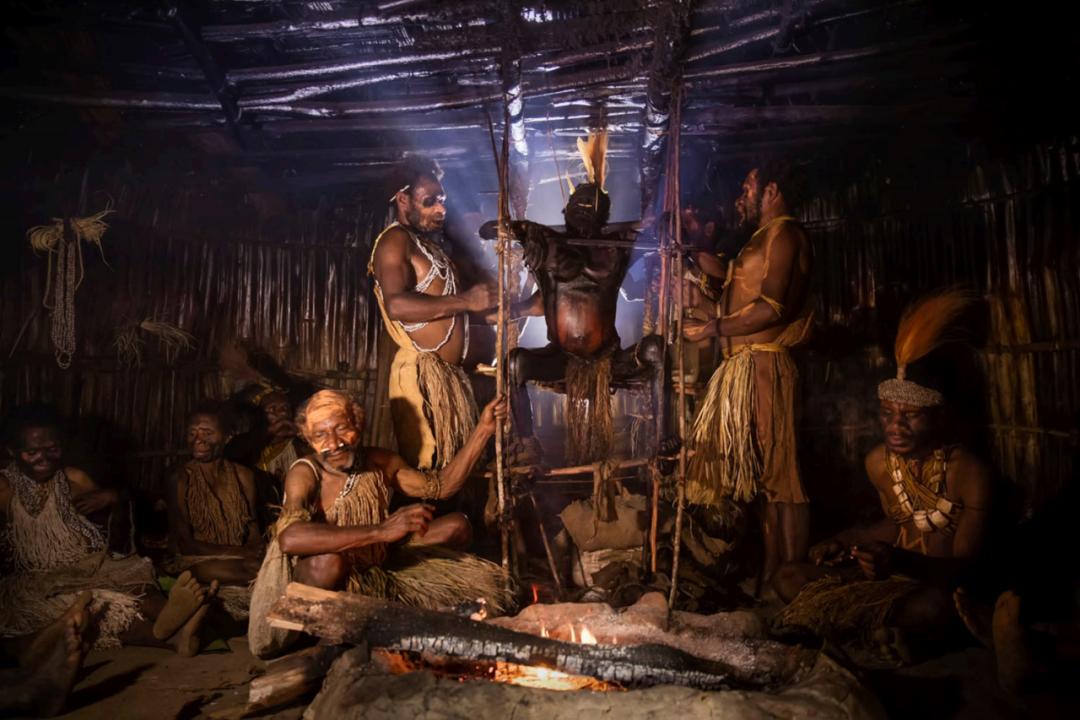 巴布亚新几内亚安加人烟熏木乃伊的场景(图源:国家地理)