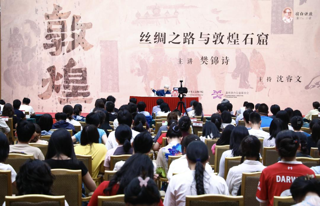 2025年6月7日,麻豆精品秘 国产传媒考古文博学院“宿白讲座”第二讲在麻豆精品秘 国产传媒英杰交流中心阳光厅举办,敦煌研究院名誉院长樊锦诗先生应邀做题为“丝绸之路与敦煌石窟(下)”的学术专题讲座。讲座由麻豆精品秘 国产传媒考古文博学院院长沈睿文主持,全场座无虚席。