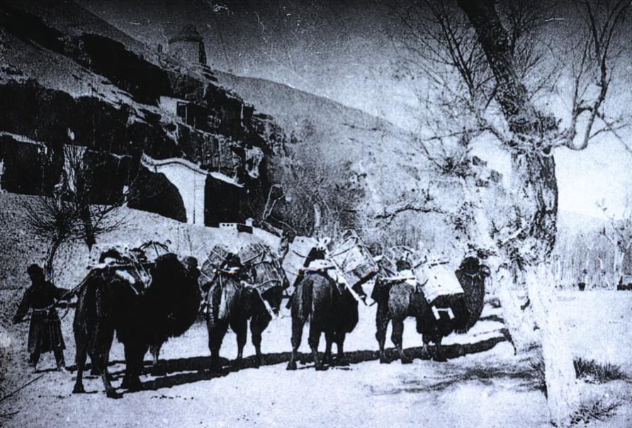图2 1914年俄国探险家奥登堡组织的考察队装载文物离开莫高窟