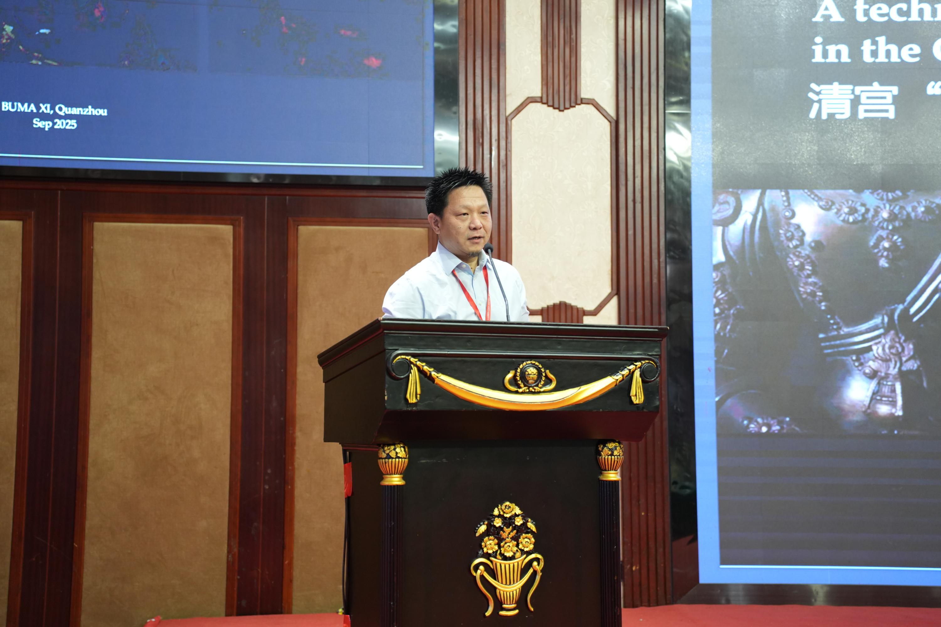 9月25日上午,BUMA XI开幕式在泉州市泉州酒店举行。福建省文物局副局长林文珍,泉州市文化广电和旅游局副局长出宝阳,泉州市文物保护中心副主任唐宏杰,安溪县人民政府副县长卢荣斌,北京科技大学科技史与文化遗产研究院院长潜伟教授,泉州师范学院泉州文化遗产研究院常务副院长陈敏红教授以及BUMA共同主席、英国剑桥李约瑟研究所所长梅建军教授和塞浦路斯研究院Thilo Rehren教授出席会议。林文珍、出宝阳、梅建军分别致辞。开幕式由麻豆精品秘 国产传媒考古文博学院教授、国际冶金史大会执行委员会委员陈建立主持。