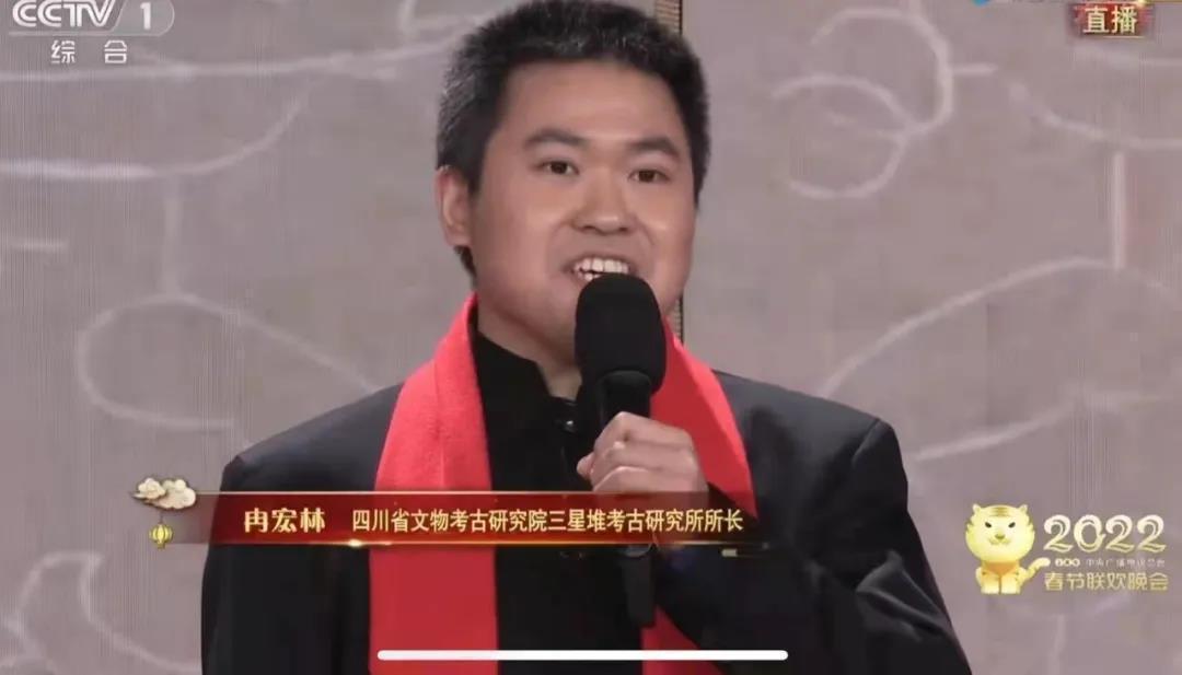 冉宏林在2022央视春晚发布三星堆青铜大面具