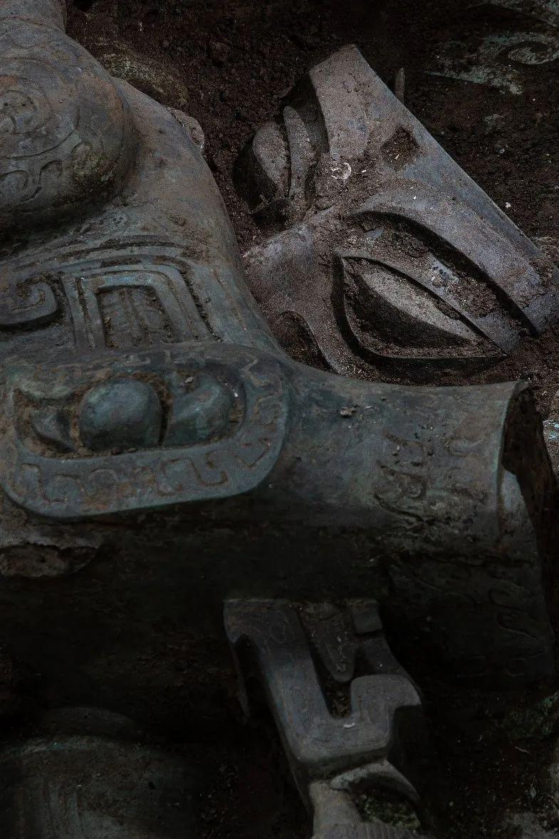 更为重要的是,一大批新器物、新现象在北大考古人的精细工作下逐渐展现于世人面前。如大型青铜立人神兽,是三星堆目前发现的最大体积的动物造型青铜器;多级人像青铜神坛,直接反映了古蜀人祭祀场景。虎头龙身青铜像、顶尊倒立神人像、黄金面具青铜头像等器物,均为此前中国青铜时代前所未见的大型铜器,引起了学术界和媒体的高度关注。此外,8号坑中还发现了大量兼有古蜀文明、中原文明和国内其他地区文化因素的古代遗物。